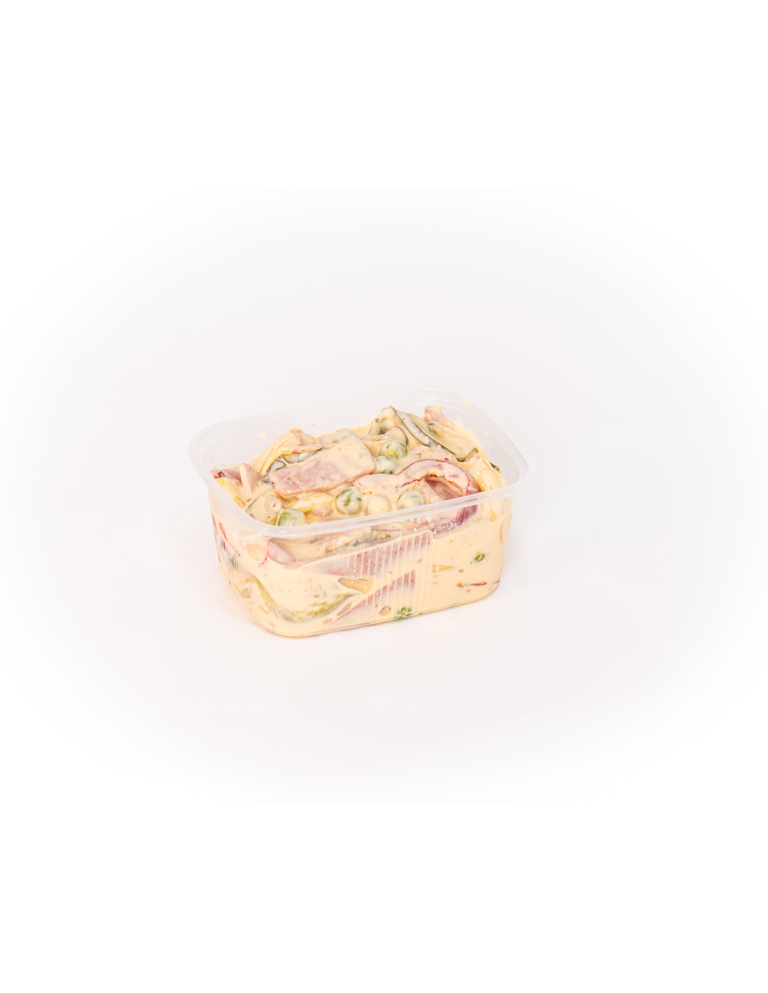 Saláty Těstovinový salát se sýrem 250 g 1713 těstoviny, majonézová zálivka, balkánský sýr, mrkev, paprika, pórek, cibule, salát polníček, mexico koření, vegena Zobrazit