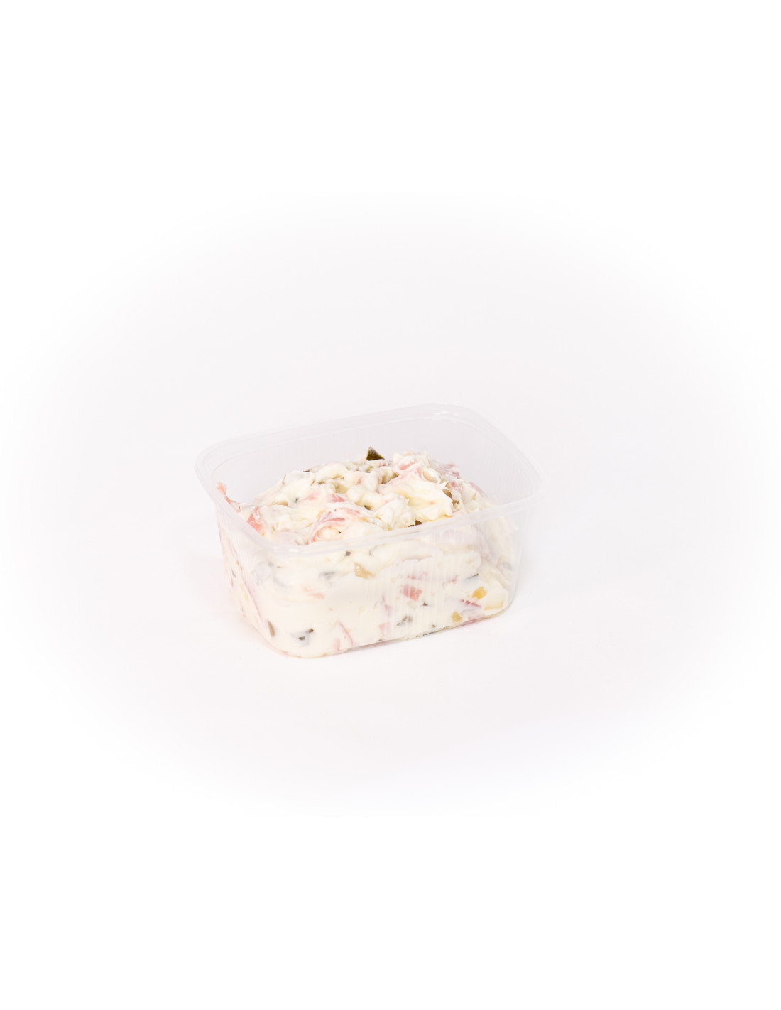 Majonézové saláty 1 000 g Vajíčkový salát 1 000 g 1004 vařené vejce, majonéza, sterilovaná okurka, vařené brambory, cibule, hořčice Zobrazit