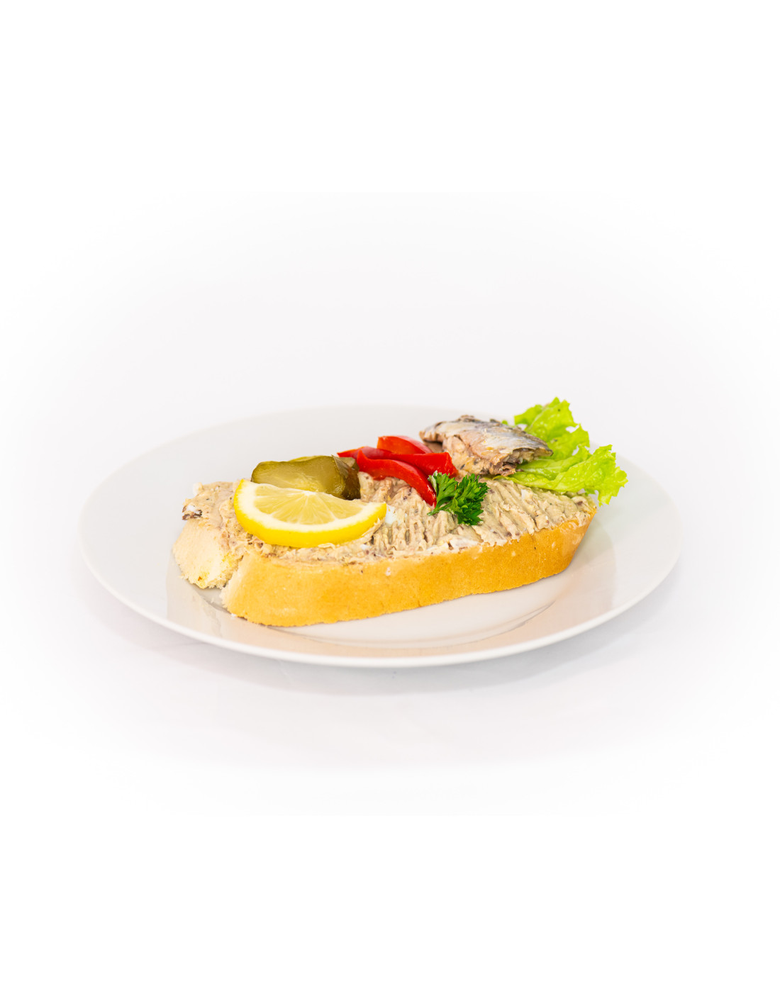 Občerstvení do ruky Smaženka vaječná 220 g 7131 směs z vajec a strouhanky, smažená na pánvi, položená na krajíci chleba s hořčicí, s cibulí, sterilovanou okurkou, rajčetem, salátem lollo biondo, petrželkou Zobrazit